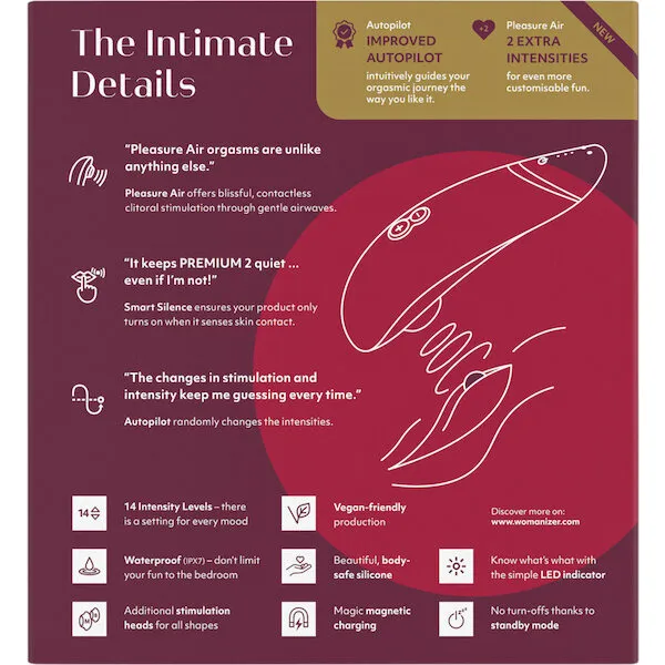 Womanizer PREMIUM 2 with the original Pleasure Air technology is our most luxurious creation yet - truly the Prada of sex toys, the ultimate toy for women who are looking for more than just another device to play with. With more...